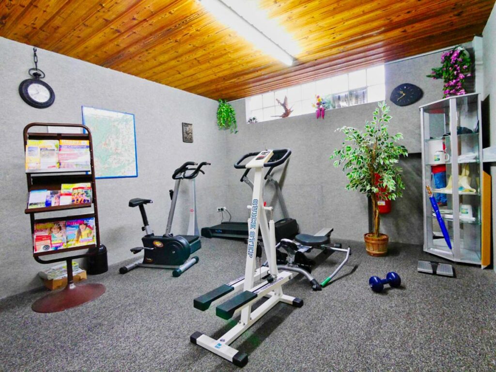 Im Trimmraum finden Sie mehrere Fitnessgeräte. Neben einem Trimm-fahrrad, einem Stepper und weiteren Kleingeräten finden Sie auch ein Motorbetriebenes Laufband für höchste Ansprüche. Neu ist jetzt noch ein Vibrationsgerät, durch das verschiedene Muskeln stimmuliert werden., sowie ein neues Rudergerät.