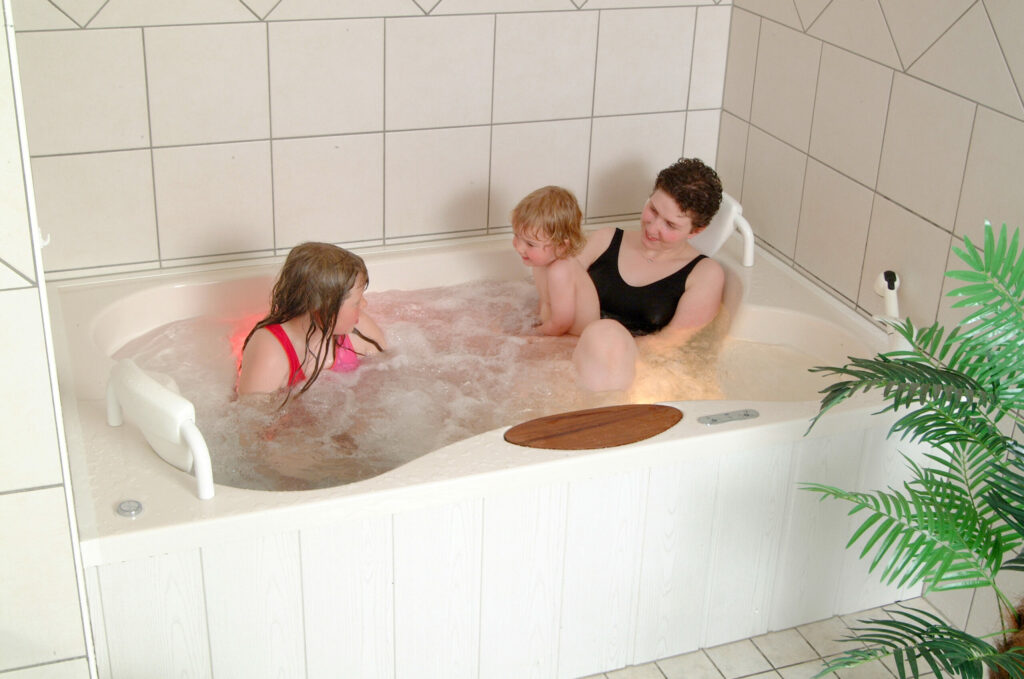 Anschließend geht es in unseren Frischwasserwhirlpool, in dem man auf Wusch zusätzlich unter Wasser massiert wird.