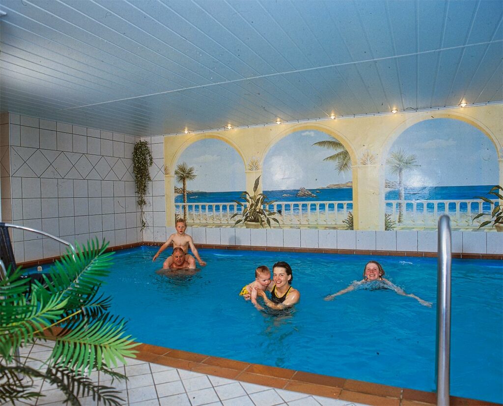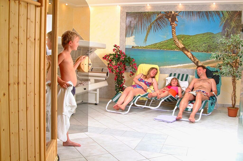 Bei angenehmen 27° Wassertemperatur ist es ein Vergnügen, seine Bahnen in unserem hauseigenen Hallenbad zu ziehen. Die effektvolle Beleuchtung und die Gegenstromanlage kann wahlweise dazugeschaltet werden.