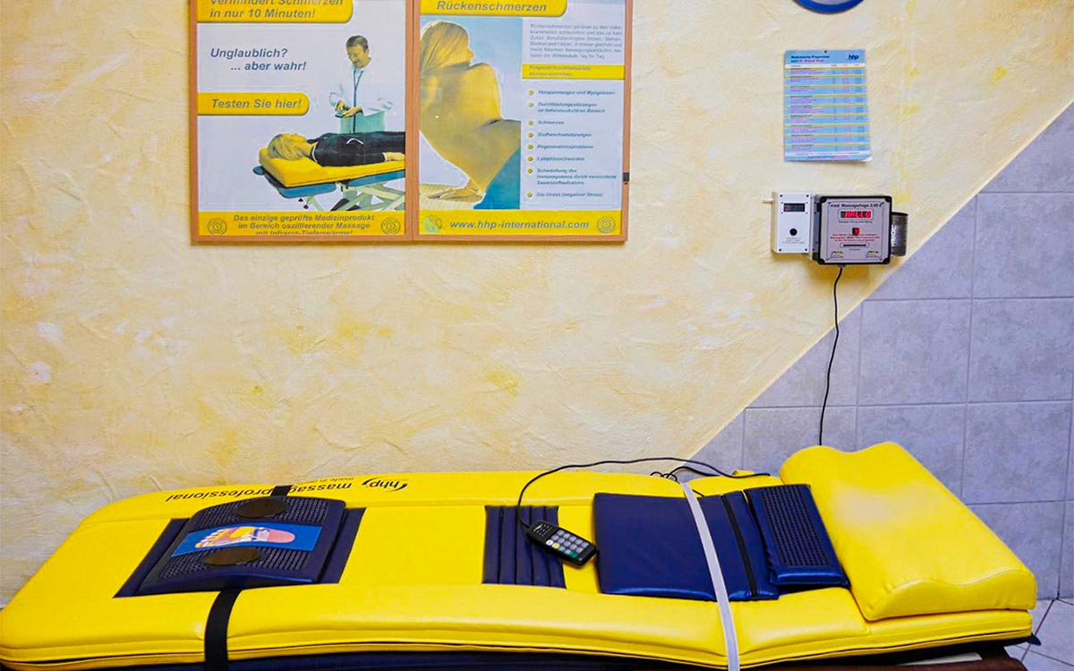 Eine Massage darf in einem guten Wellness-Angebot natürlich nicht fehlen. Dafür steht Ihnen unserere medizinisch geprüfte und von den Krankenkassen empfohlenen Massagestation zur Verfügung. Der Vorteil gegenüber einer herkömmlichen Massage ist der günstige Preis sowie eine individuelle Massage zu jeder Tagezeit und ohne Voranmeldung.